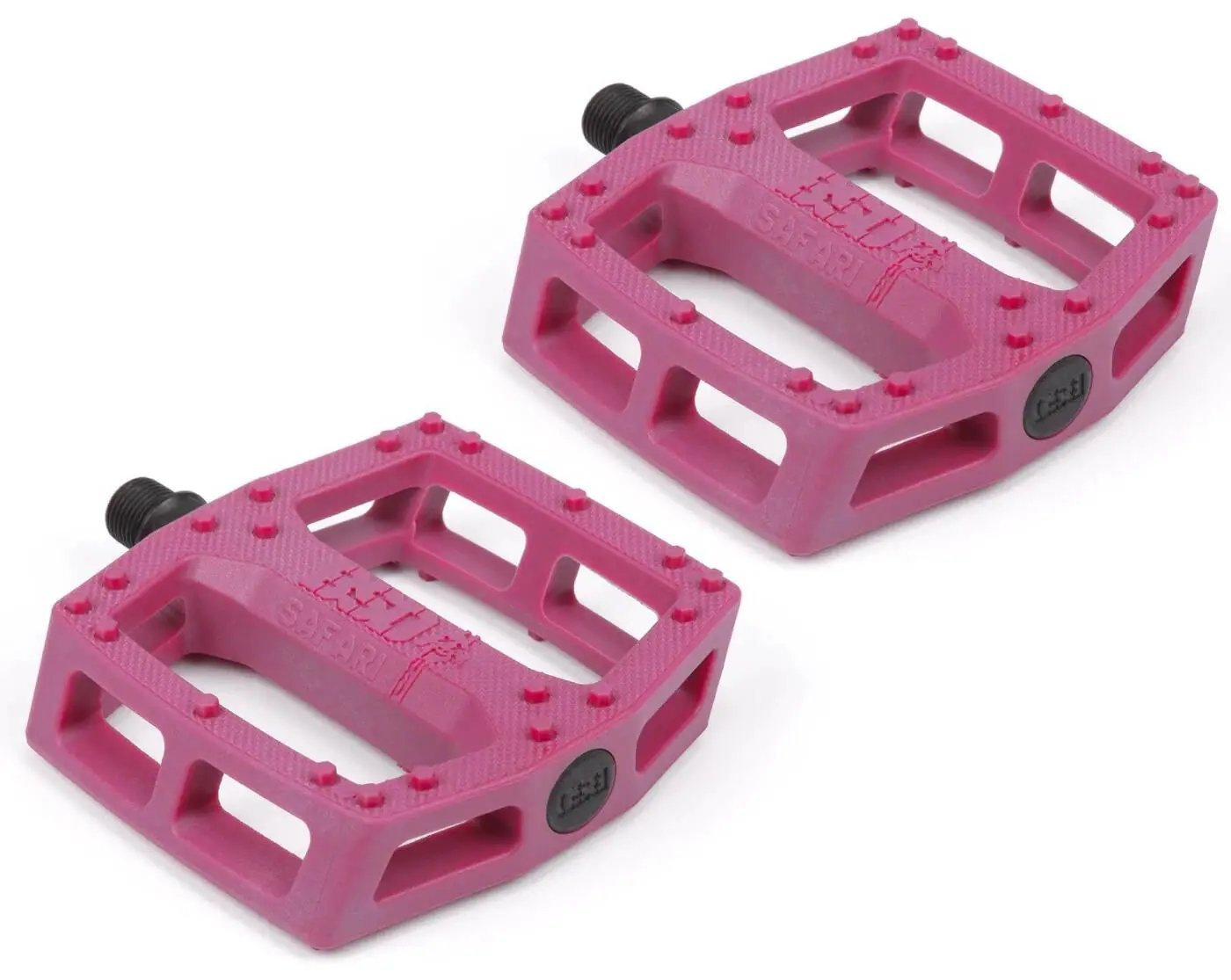Reed has been talking about this pedal idea for as long as he’s been on BSD. He noticed that when a bike falls to the ground, the corner pins on plastic pedals grind and break off. The Safari pedal is designed with extra pins in these high impact areas to ensure the pedal stays grippy after withstanding severe abuse. The optimal pin placement, hexagonal pin shape, and knurling all combine to make this one of the most durable, effective plastic pedals in the market.