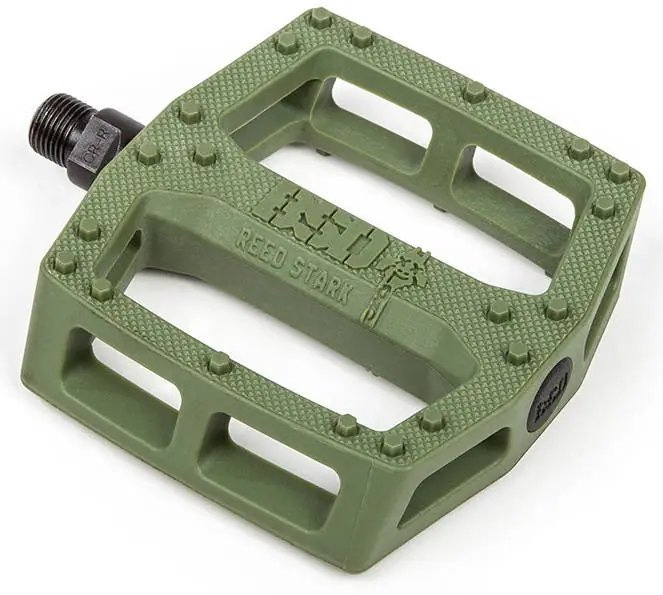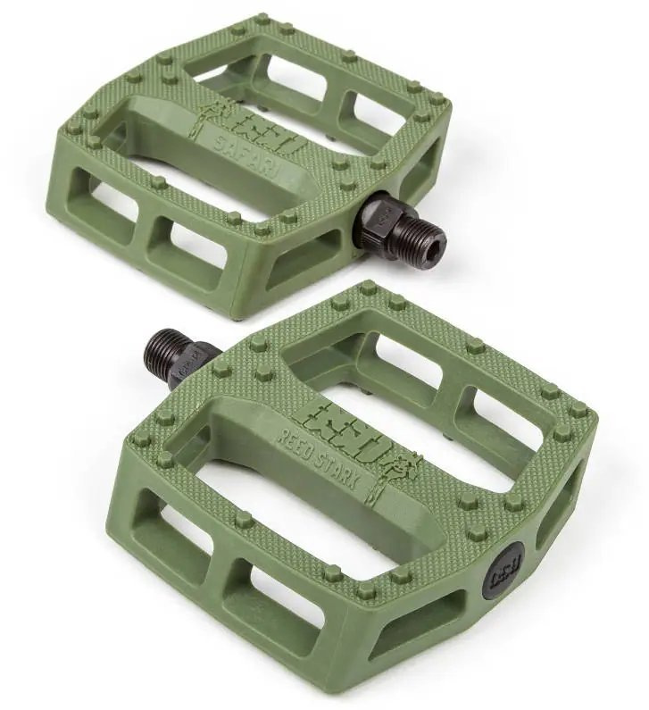 Reed has been talking about this pedal idea for as long as he’s been on BSD. He noticed that when a bike falls to the ground, the corner pins on plastic pedals grind and break off. The Safari pedal is designed with extra pins in these high impact areas to ensure the pedal stays grippy after withstanding severe abuse. The optimal pin placement, hexagonal pin shape, and knurling all combine to make this one of the most durable, effective plastic pedals in the market.