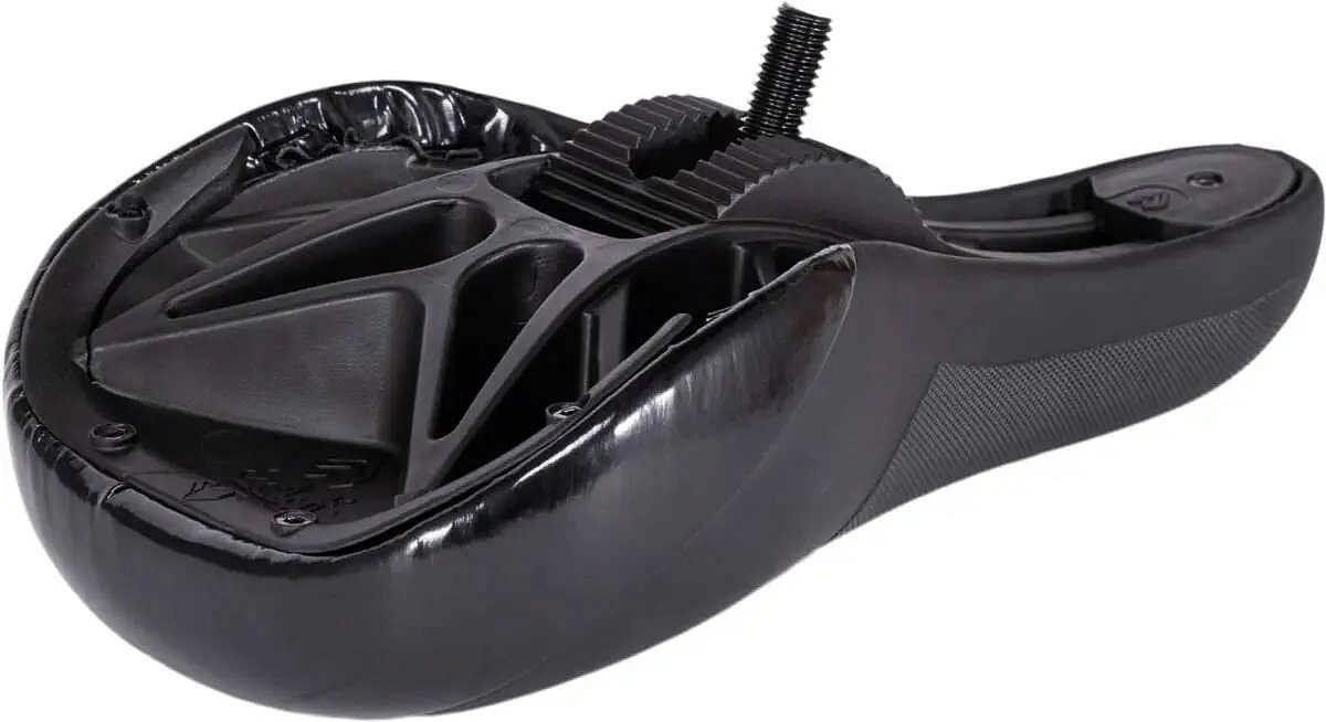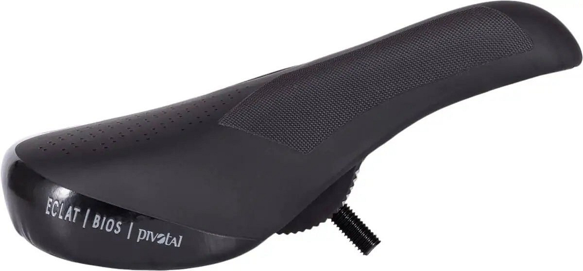 This is a well-performing seat for BMX. It is designed for pivotal seat posts and allows to adjust the seat angle with high precision.