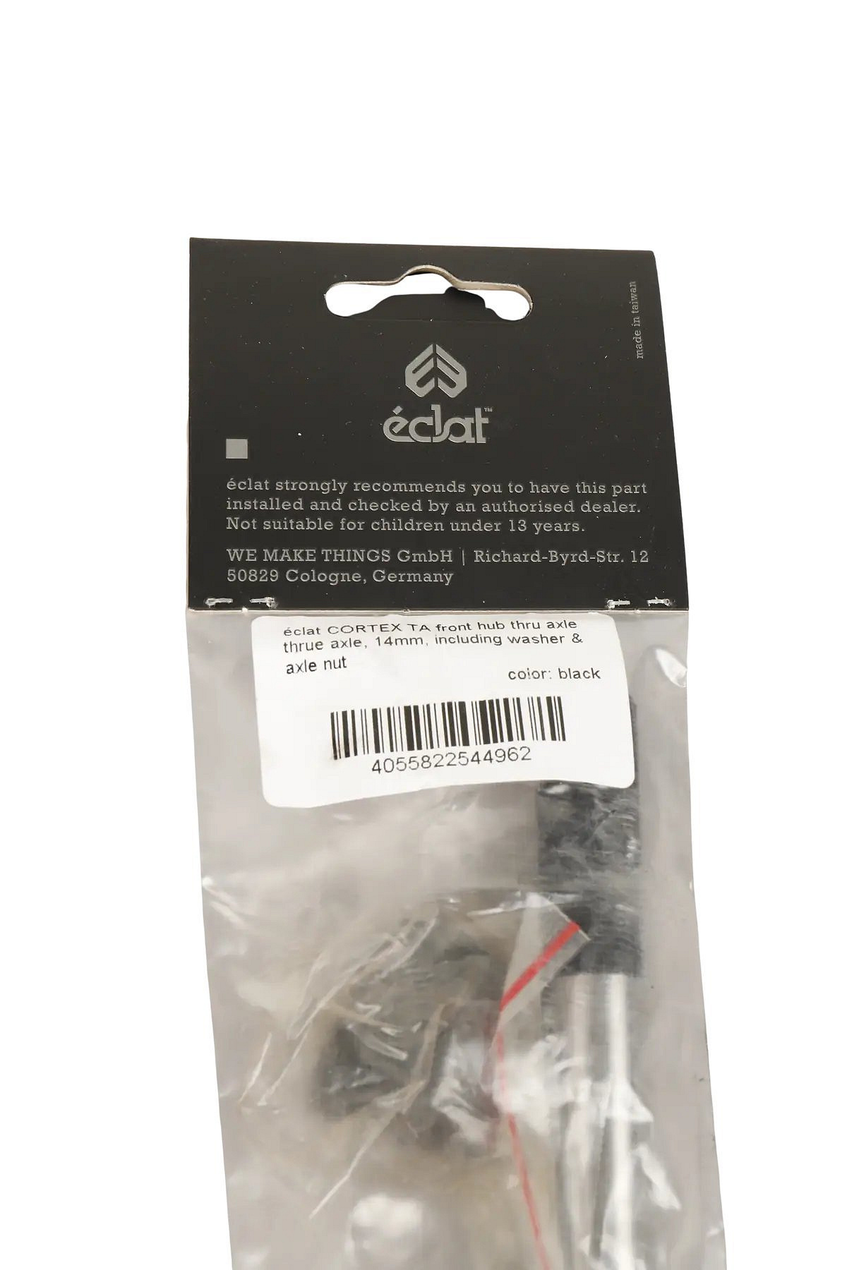 Éclat Cortex TA Souprava osiček pro přední nápravu obsahuje 14mm průchozí osu s podložkou a maticí.