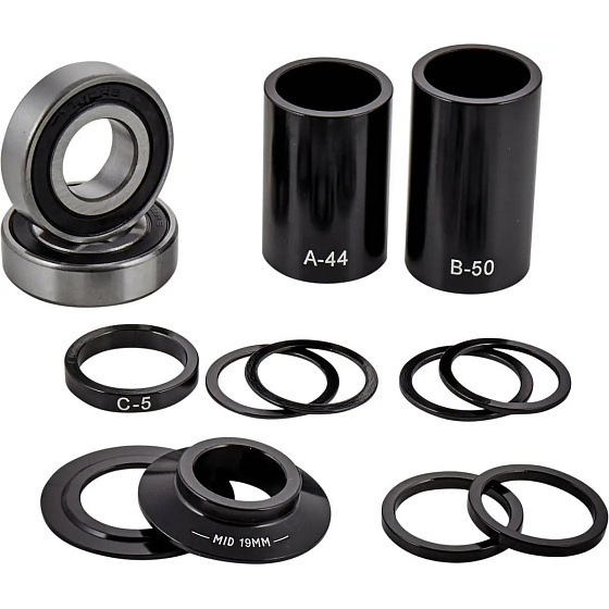Geschlossene Lager von Eclat für Rahmen mit MID-Tretlagergehäuse. Inklusive Kegel und Spacer zur Einstellung der Kette.