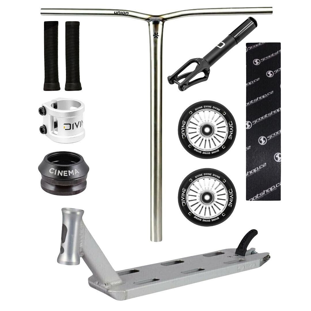 Dieses Custom ist auf dem Deck Longway Kaiza 480 mm aufgebaut, das aufgrund seiner Länge ideal für den Skatepark ist. Kombiniert Festigkeit und leichte Konstruktion, sodass sie perfekte Stabilität bei Whips und Rotationen bietet. Für eine schnelle und reibungslose Fahrt sorgen die Divine Turbo 110 mm Rollen, während die Divine HIC/SCS Gabel und das geschmeidige Cinema Headset einen präzisen Lauf ohne Spiel gewährleisten.