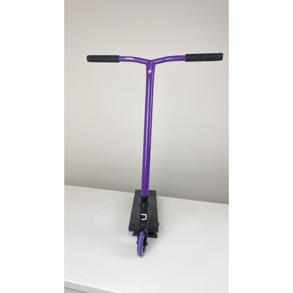 Dieser einzigartige Aufbau ist für fortgeschrittene bis erfahrene Fahrer konzipiert, die die Street/Park-Umgebung lieben. Das Gesamtgewicht dieses Rollers beträgt beeindruckende 4300 Gramm, was für seine Größe und das verwendete Material ein erstaunlicher Wert ist. Auf diesem Roller finden wir ein Divine Street Deck mit den Maßen 520 x 153 mm (Länge x Breite) und einem Footspace von 400 mm. Wir haben den Union Uniq Bend Oversized Lenker gewählt, hergestellt aus robustem Material, mit den Maßen 670x580mm. Am Lenker sind Fiction Troop Griffe in schwarzer Farbe montiert. Das gesamte Set ist mit einem HIC-Kompressionssystem verbunden, das alle Komponenten fest an ihrem Platz hält.HIC ist mit der Divine Gabel verbunden, die Zuverlässigkeit und Stabilität bei jedem Aufprall gewährleistet. Das Steuersatz enthält zuverlässige Divine Lager, die für ein reibungsloses Drehen aller Tricks sorgen. Was die Räder betrifft, ist der Roller mit 110mm Union Turbomatic V2 ausgestattet, mit Aluminiumkernen in einer Kombination aus Schwarz und Lila. Das gesamte Setup wird durch die stilvolle und robuste Klemme Triad Conspiracy abgeschlossen.