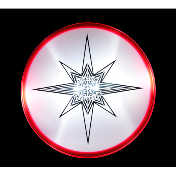 Auch nach Einbruch der Dunkelheit hört der Spaß mit der fliegenden Untertasse Aerobie Skylighter ™ nicht auf. Zwei LEDs leuchten die Mitte und die durchscheinenden Ränder der fliegenden Untertasse schön aus, so dass die geworfene fliegende Untertasse im Dunkeln deutlich sichtbar ist. Das Licht wird über einen Schalter eingeschaltet und durch zwei austauschbare handelsübliche 3-V-Knopfbatterien CR2032 mit Strom versorgt - bei ausgeschaltetem Licht kann die Platte natürlich tagsüber geworfen werden.
