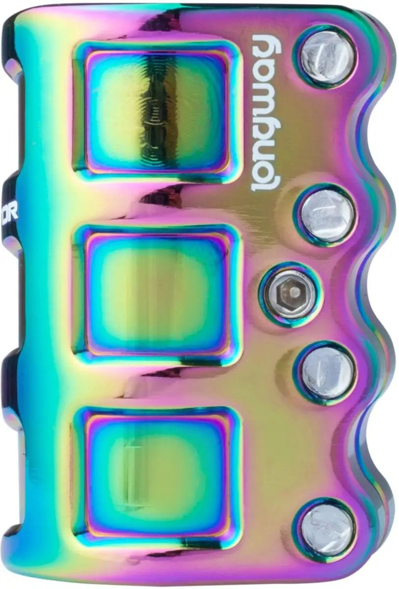 Dieses Produkt ist so konzipiert, dass es maximale Stabilität und Sicherheit bietet, egal ob Sie im Skatepark oder auf den städtischen Straßen unterwegs sind. Was dieses Produkt wirklich auszeichnet, ist seine Vielseitigkeit. Die Verpackung enthält einen Shim, der die einfache Installation der Schelle sowohl an Standard-32 mm-Lenkern als auch an übergroßen Lenkern mit einem Durchmesser von 35 mm ermöglicht. Unabhängig von der Größe Ihres Lenkers ist der Longway Protector SCS die ideale Wahl.SCS hat die fünfte Schraube auf dem Rostazni SCS.