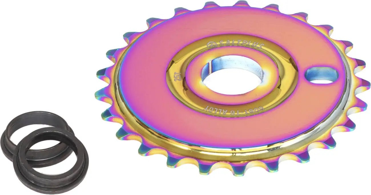 Salt Plus Solidus Freestyle ist ein leistungsstarker BMX-Kettenblatt für Freestyle-Räder. Verfügbar in den Versionen 25T und 28T. Wenn Sie höhere Höchstgeschwindigkeiten erreichen möchten, wählen Sie ein größeres Kettenblatt mit mehr Zähnen. Wenn Sie jedoch leichteres Treten und bessere Beschleunigung wünschen, sollten Sie ein kleineres Kettenblatt wählen. Dieser Salt-Umwandler ist mit 19mm und 22mm Achsen kompatibel.