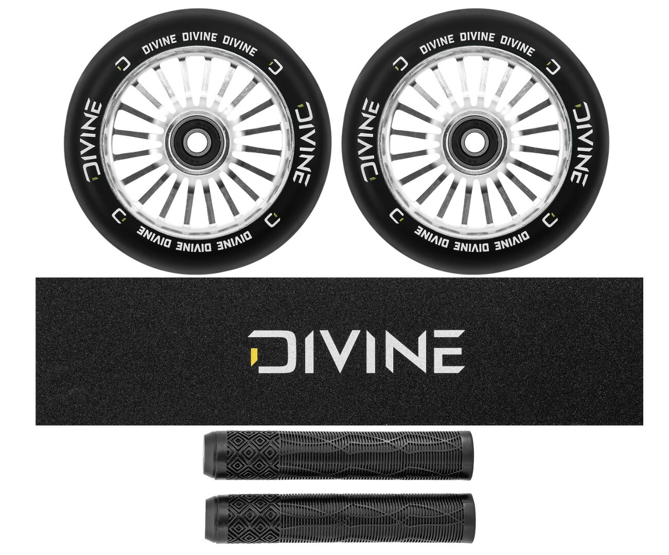 Ausgezeichnete 110 mm Rollen mit Aluminiumkern von der neuen tschechischen Marke Divine. Die Breite des Rades beträgt standardmäßig 24 mm. Lager ABEC 11 garantieren eine hervorragende Geschwindigkeit.