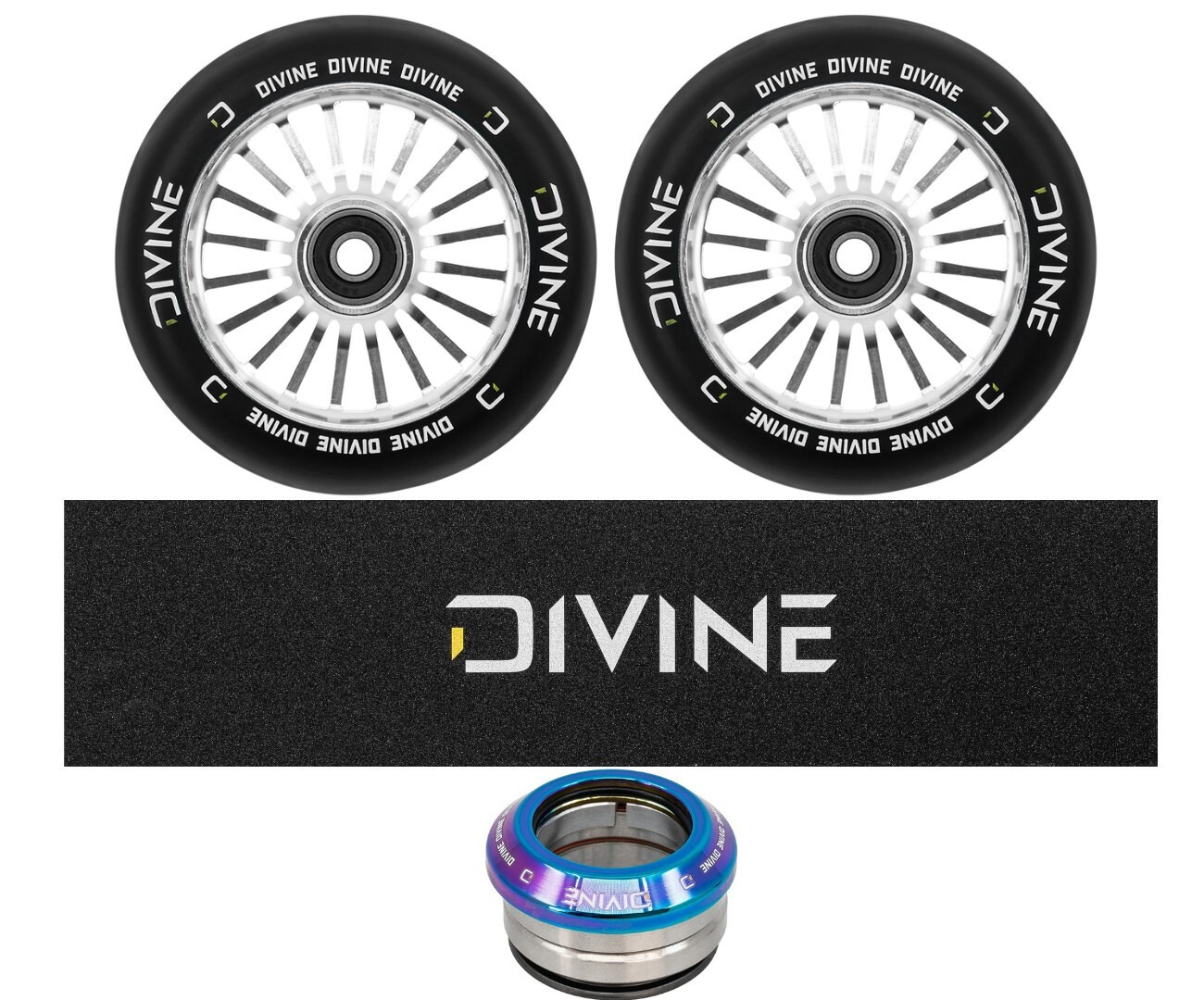 Ausgezeichnete 110 mm Rollen mit Aluminiumkern von der neuen tschechischen Marke Divine. Die Breite des Rades beträgt standardmäßig 24 mm. Lager ABEC 11 garantieren eine hervorragende Geschwindigkeit.